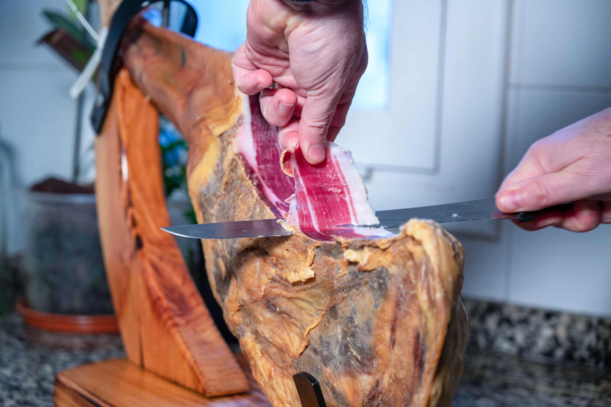 Un corte irregular, demasiado grueso o hecho con un cuchillo inadecuado no solo dificulta la degustación, sino que también expone el jamón al aire de forma desigual, acelerando el deterioro.