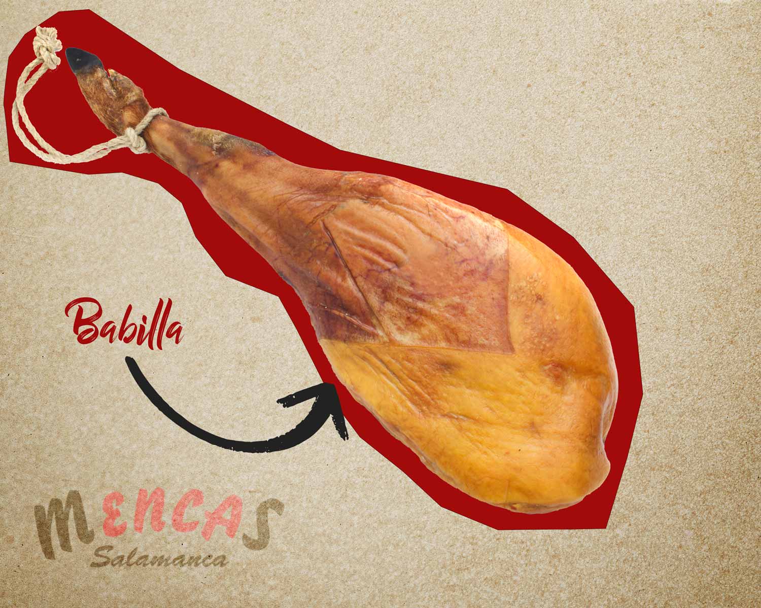 La babilla se encuentra en la parte interna del jamón, más próxima al hueso. Al tener menos grasa, tiende a ser más magra y de sabor más intenso. Es la primera parte que se corta cuando se comienza el jamón por el lado estrecho.